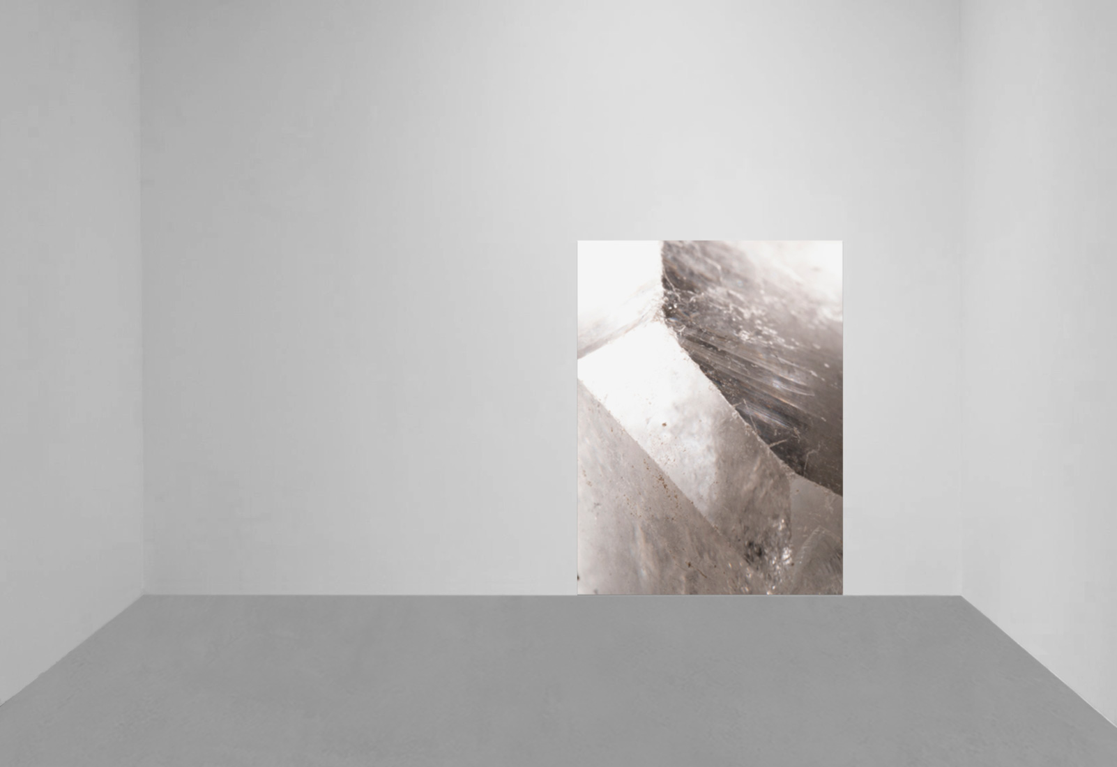 On a summer's day in 1991, in the sea near where Whelan grew up, a young scuba diver disappeared during a dive. A search took place involving the whole neighbourhood, but the diver's body was found days later, caught up in illegal fishing nets. In an attempt to connect with any biological or metaphysical traces of this event, Whelan placed quartz crystals among the rocks and seaweed at this site. For a full moon cycle, the crystals became part of this environment, submerged under the violent waves. They were then collected without any human touch, so as not to affect the surface and the potential trauma absorbed within. The crystals were photographed using extreme macro photography, investigating the edges, surfaces and the algae attached. Afterwards, the crystals were returned to the sea. The height of the prints corresponds to the average height of a person in the country where the work is exhibited.