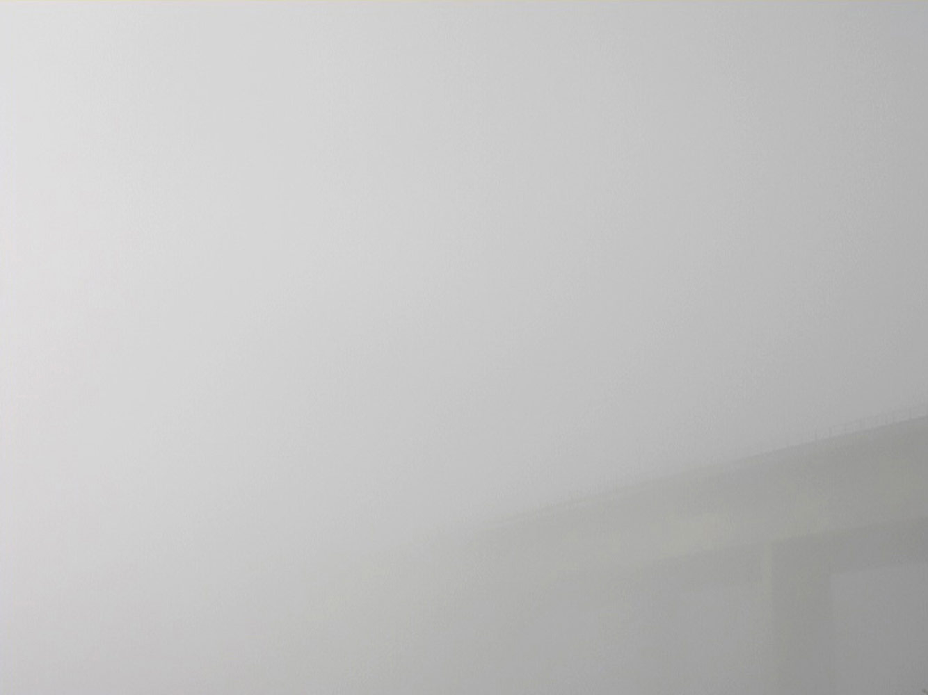 This video begins with very minimal visual imagery. After some time information begins to reveal itself: this is a single take of a very large autobahn bridge in rural Germany which was hidden by morning mist. Recorded in real time, the rising sun evaporates the mist, slowly revealing a portrait of the bridge with the constant passing of the cars, which appear small from the camera position. |