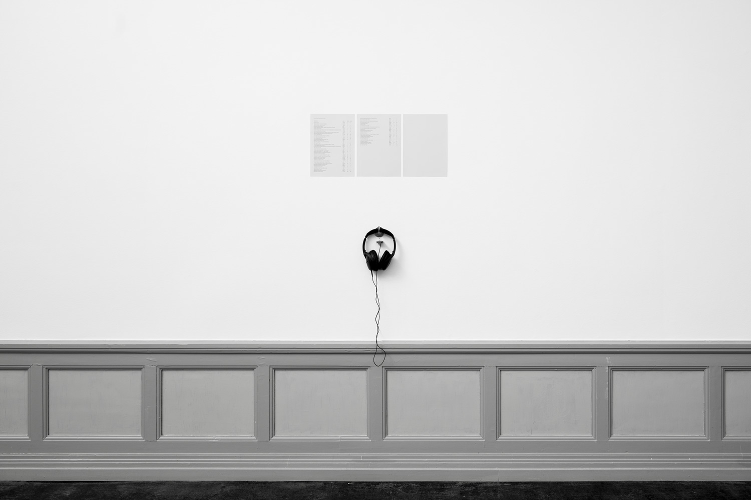 This sound recording made inside the Svalbard Global Seed Vault is presented on noise cancelling headphones, alongside three sheets of paper. With a constant temperature of -18 °C, the vault is built 120 meters inside the sandstone mountain Platåberget on Spitsbergen Island, far from tectonic activity, war and rising water levels. By leaving the recorder alone is the space without any human activity present, the result is an almost silent sound recording, comparable to the actual experience of standing silently in the vault itself. The only sound is a slight resonating from the coolant system which runs constantly to maintain the preservative temperature of the vault. This vacuous soundscape is presented alongside three sheets of paper indicating the actual inventory of the vaults, updated annually. The empty sheets are suggestive of the future possibilities/eventualities for both the vault and the world in which it was built.