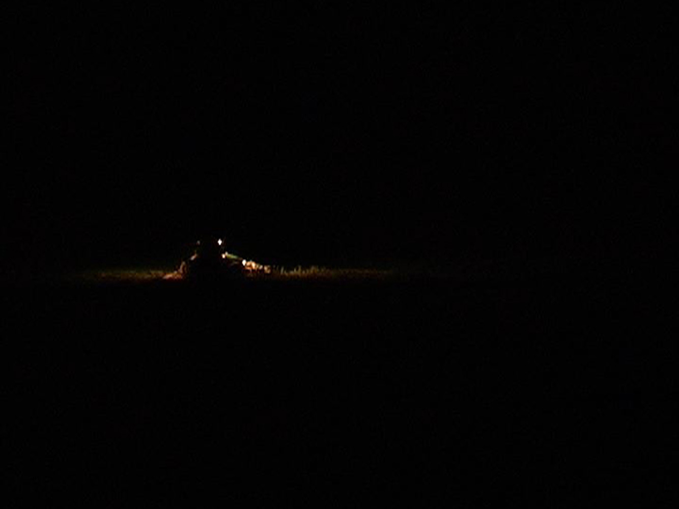 The vacuum of black darkness is repeatedly interrupted by the presence of a farmers tractor fitted with spotlights. The constant action repeats, criss crossing the frame until the end where the lights are then turned onto the viewer, breaking the pattern of absence/presence.