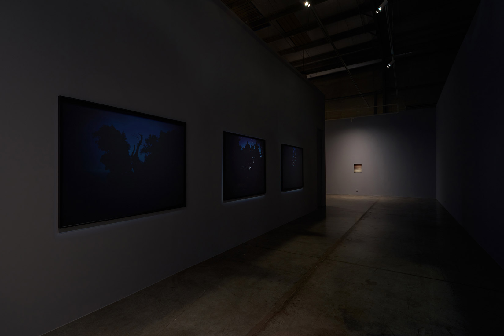 Since 2017, Whelan has been travelling regularly to these dark sites across the world, focusing specifically on the places themselves. Directly connected with overpopulation, errant light pollution mortally affects migrating birds, fish, bats and sea turtles and is a contributing factor in the decline of insect populations, and consequently invaluable ecosystems. It disrupts the human cicada rhythm, leading to significant physical and psychological problems that are only just beginning to be understood. Photographing the places at night, using a large format camera with long exposures, the base chemistry of the film records traces of light that would otherwise be invisible to the human eye. Inherent in this project is a gesture of impossibility: How can the immaterial be captured? How can absence be recorded? How can darkness itself be recorded on film? Only traces of the landscapes become visible. The uncanny lack of detail in these large-scale images is captivating - absence becomes presence. The project challenges the limits of photography, the minimal aesthetic of the images creates an unsettling contrast to the subject matter.