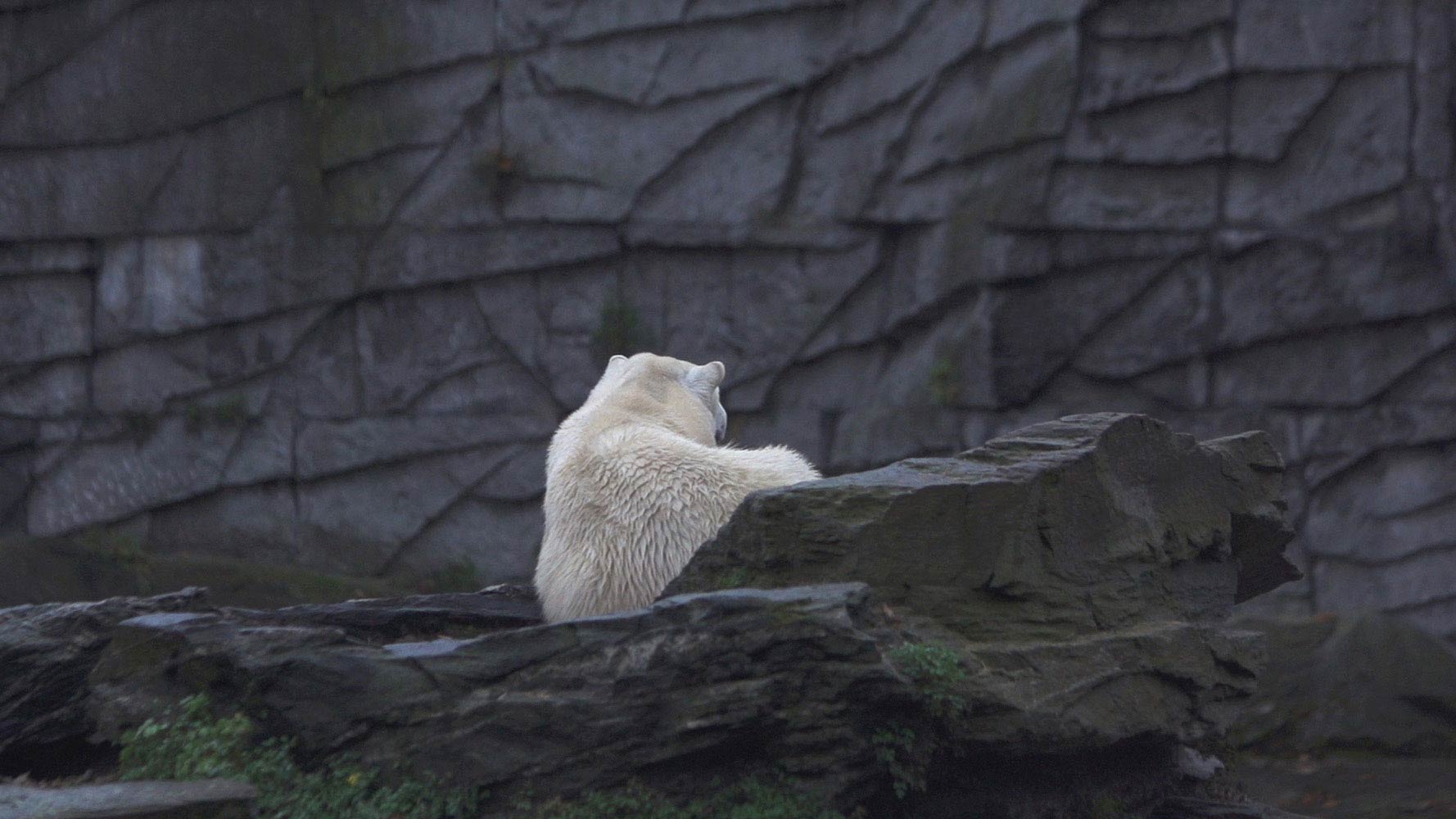 Nine individual segments record a captive bred polar bear in the Berlin Zoo. Whelan recorded each segment at 320 frames per second on a high-speed camera, significantly slowing down the already minimal movements of the largest living species of terrestrial predator to a series of reductive gestures. The visual deceleration achieved through the slow motion brings the viewer into an abnormal temporal relationship with the animal, creating both a tension and a moment of shared experience. When exhibited the sections are looped seamlessly to give the impression that they continue in an infinite cycle.