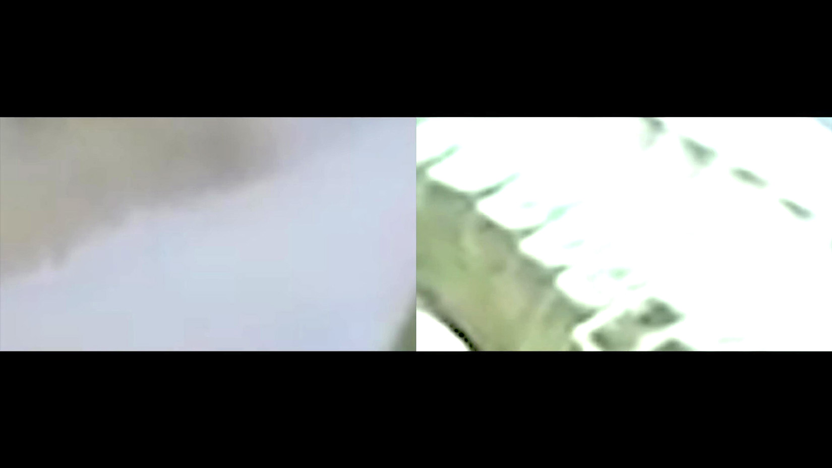 This work takes as a starting point the appearance of a white humpback whale off the coast of the Arctic archipelago Svalbard in 2012. A fractured narrative is constructed across two screens intertwining and juxtaposing both found and originally created footage. The found footage consists of dozens of digitally recorded albino appearances of animals from all over the world, distorted visually to the edge of abstraction. The originally filmed footage is of different parts of the coastline of Svalbard, facing the Arctic Ocean. Both visual positions appose the unseen and the recorded, the absent and the digitally present. Using this imagery in combination with subtitles and sound, Frontier explores albinism as a genetic phenomenon and an attraction often resulting in abuse and ritual persecution. The subtitles originate from three sources: testimonies from Tanzanian and Malawian albinos, scientific studies into the relationship between radiation from Chernobyl and the increase in albinism in birds, and the original dialogues in the background of the found footage from the internet.