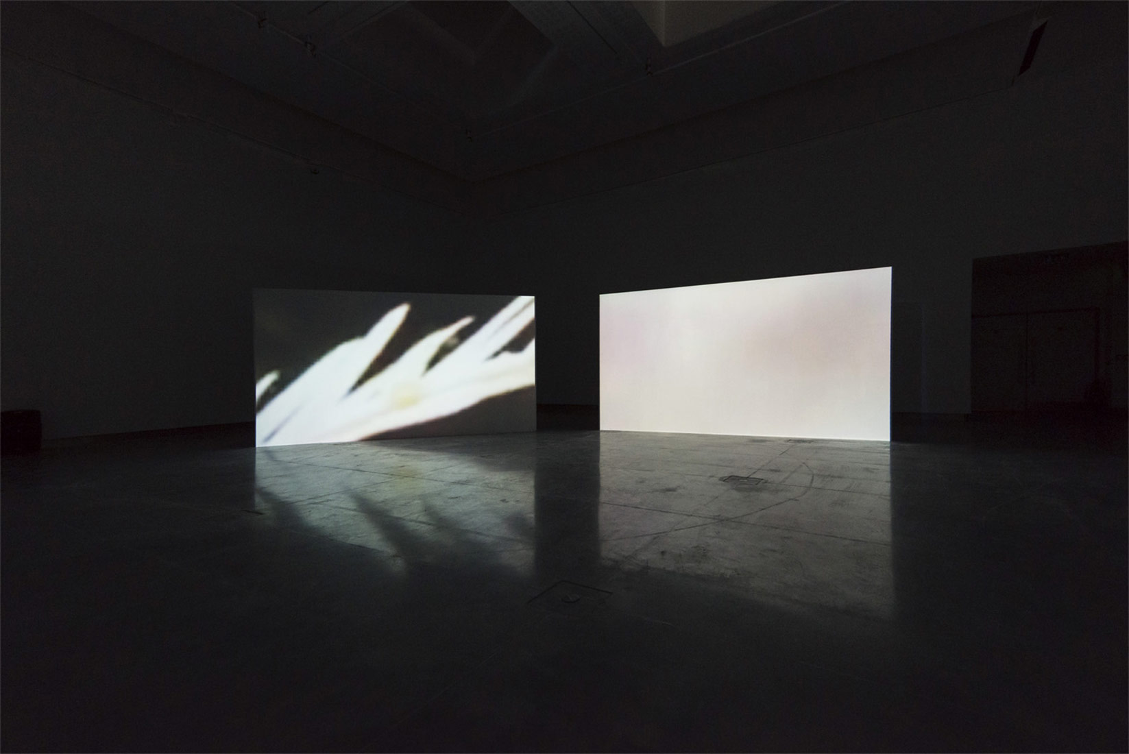 This work takes as a starting point the appearance of a white humpback whale off the coast of the Arctic archipelago Svalbard in 2012. A fractured narrative is constructed across two screens intertwining and juxtaposing both found and originally created footage. The found footage consists of dozens of digitally recorded albino appearances of animals from all over the world, distorted visually to the edge of abstraction. The originally filmed footage is of different parts of the coastline of Svalbard, facing the Arctic Ocean. Both visual positions appose the unseen and the recorded, the absent and the digitally present. Using this imagery in combination with subtitles and sound, Frontier explores albinism as a genetic phenomenon and an attraction often resulting in abuse and ritual persecution. The subtitles originate from three sources: testimonies from Tanzanian and Malawian albinos, scientific studies into the relationship between radiation from Chernobyl and the increase in albinism in birds, and the original dialogues in the background of the found footage from the internet.