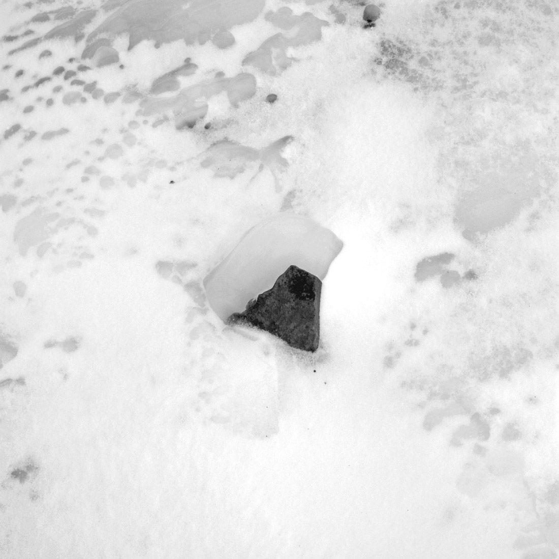 Once released onto the mountain, liquid from a cooling system 120 meters inside the Svalbard Global Seed Vault freezes. Throughout this slow process it is influenced by the Arctic wind from across the mountain. As the liquid solidifies, the ground and stones are slowly covered by this glacially paced crystalline growth. Each photograph presents a single stone in various stages of envelopment. Two of the stones have been completely covered and are almost invisible shadows beneath the ice.