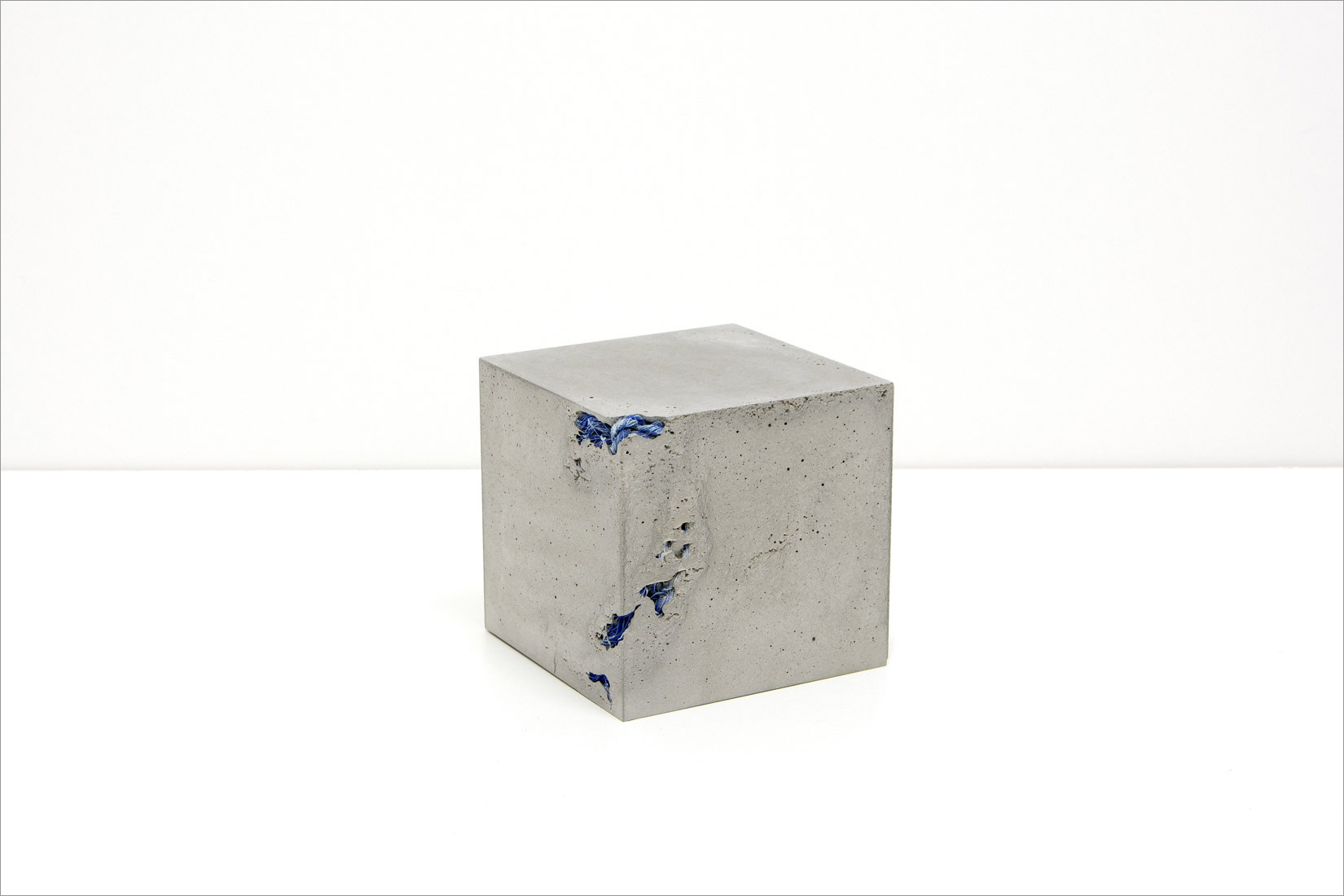 For this ongoing project, non-organic items are removed from different seas across the world. They are cast in recycled concrete, creating simple cubic forms. Each object acts as an azoic monument to our destructive tendencies, and complicity in environmental degradation. The title references the geological term for a foreign body enclosed within rock.