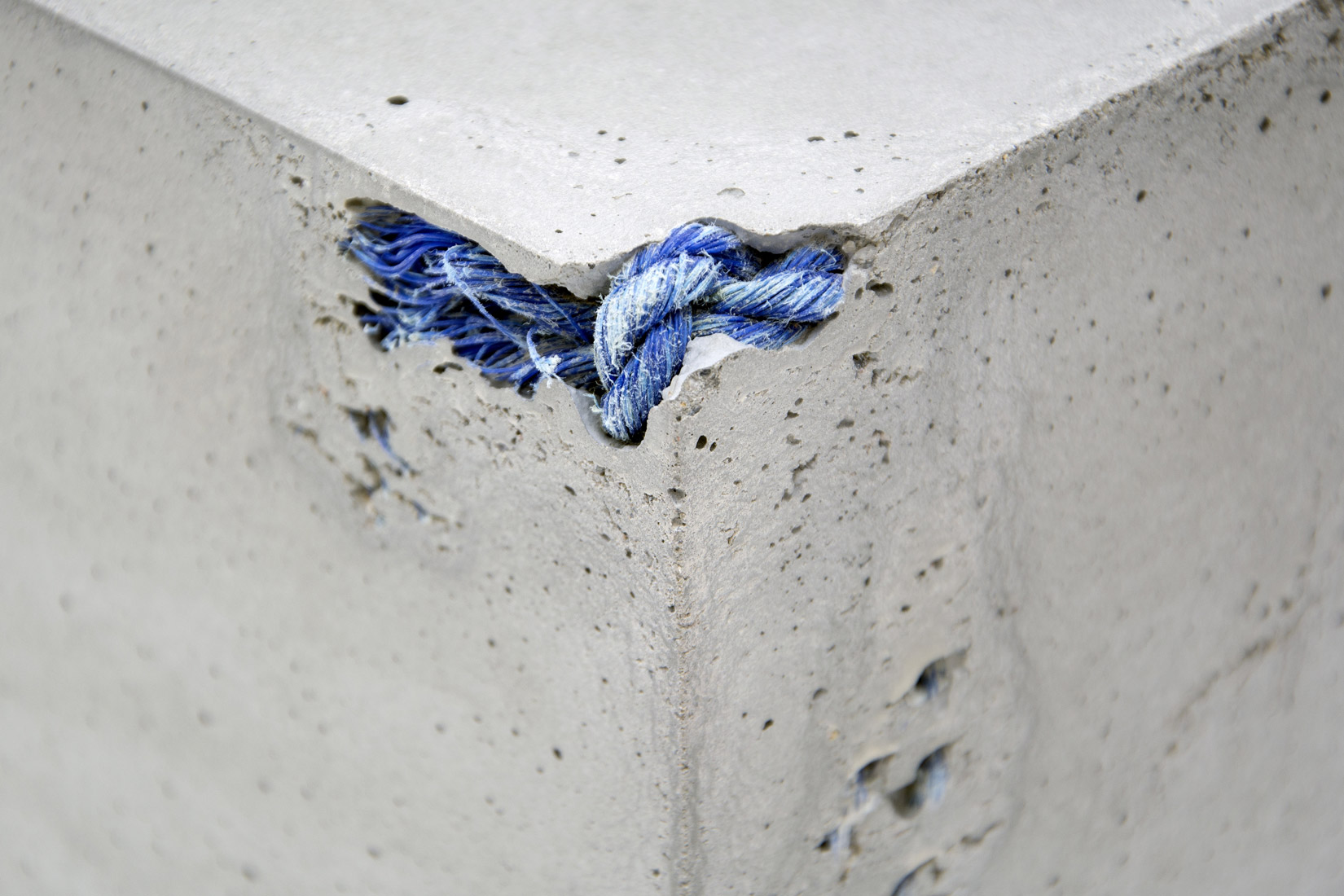 For this ongoing project, non-organic items are removed from different seas across the world. They are cast in recycled concrete, creating simple cubic forms. Each object acts as an azoic monument to our destructive tendencies, and complicity in environmental degradation. The title references the geological term for a foreign body enclosed within rock. |