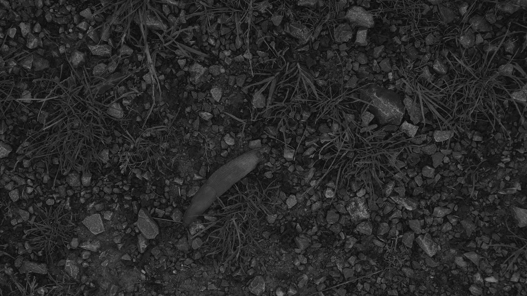 An exploration of humanity's increasingly questionable relationship to, and distance from, the natural world. Imagery of wolves and Irish wolfhounds sits in contrast to historically important locations in Ireland and Germany, including the site where the last Irish wolf was killed in 1786. Abstract shots of rural landscapes at night alternate with close-up observations of wolves in a nature reserve. A dull, barren mountain landscape filmed at dawn envelops minimal concrete forms. These traces of supports and structures are part of a former Belgian (and then German) cold war missile base. These physical remnants offer an example of our fear-driven mistreatment of the landscape and become a contemporary archaeological testament to the global theatre of war and the extent of cold war western paranoia. The minimal nature of each shot is designed to create both visual poetry and tension: a close-up of a slug is followed by an ominous dark landscape, noisy cars pass by on a black, rainy road and are staggered by the quiet of the night sky above Mount Leinster. The journey continues from these romantic tableaus to the intimate footage of wolves and wolfhounds - dogs originally bred for killing wolves and also favoured amongst the British in Ireland. This imagery gives us access to the animals but by showing mainly details, restricts the viewer and poses questions about our mutable roles as observer, protector and ultimately consumer.