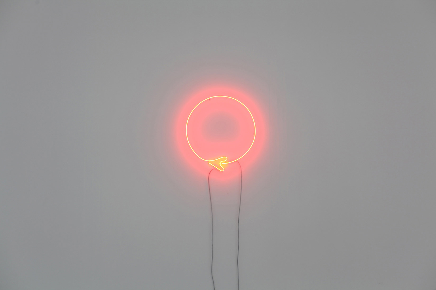 Depicting a serpent eating its own tail, the ancient symbol ouroboros is constructed in red neon. It flashes 24 hours a day for the duration of the exhibition and is often installed in a public location facing the street. The exact timing of the flashing is sourced from footage of the earliest neon signs. The constancy of the flashing resonates with the cyclicality that the symbol represents.