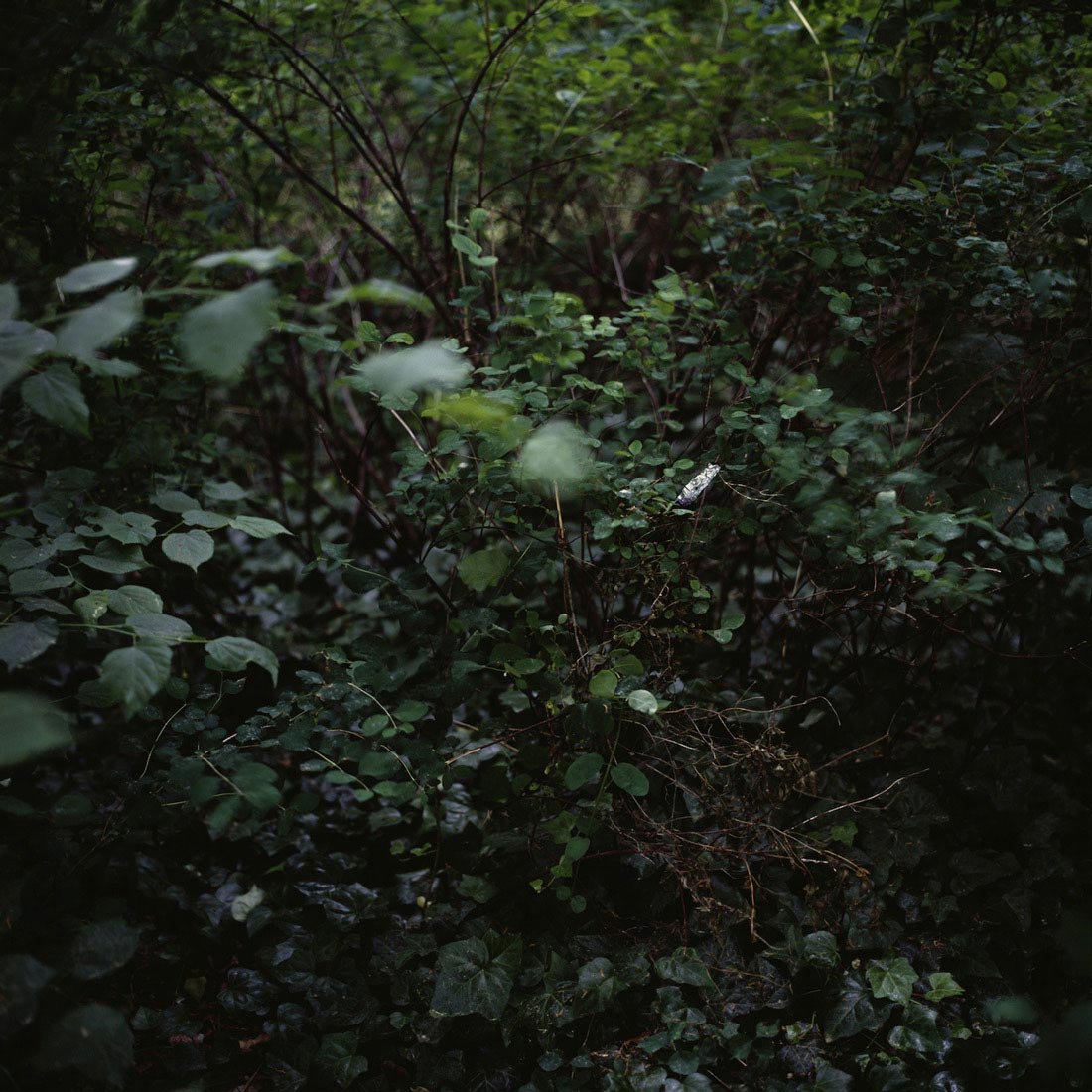 Photographed after storms and recorded on high saturation transparency film, these photographs present banal landscapes as backdrops for exceptional visual elements. A sense of absence is evoked through the representation of subtle found gestures like a felled tree, bird faeces or a discarded sweet wrapper. |