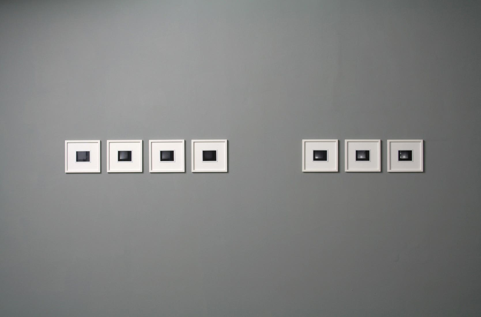 'Stars' captures long exposure images of star trails in a manner normally associated with traditional astrophotography. With the polaroid medium there is no reproducible negative, so each image is unique, questioning the relationship with our spectacular and often photographed cosmos. 'Star' uses the smallest aperture and fastest shutter speed of a medium format camera. Pointed directly at the sun, a minuscule exposure time results in a blinding image of our sun. By using the Hasselblad square format, the Polaroid is only partly exposed and therefore its unexposed blackness becomes an important element of the work. |
