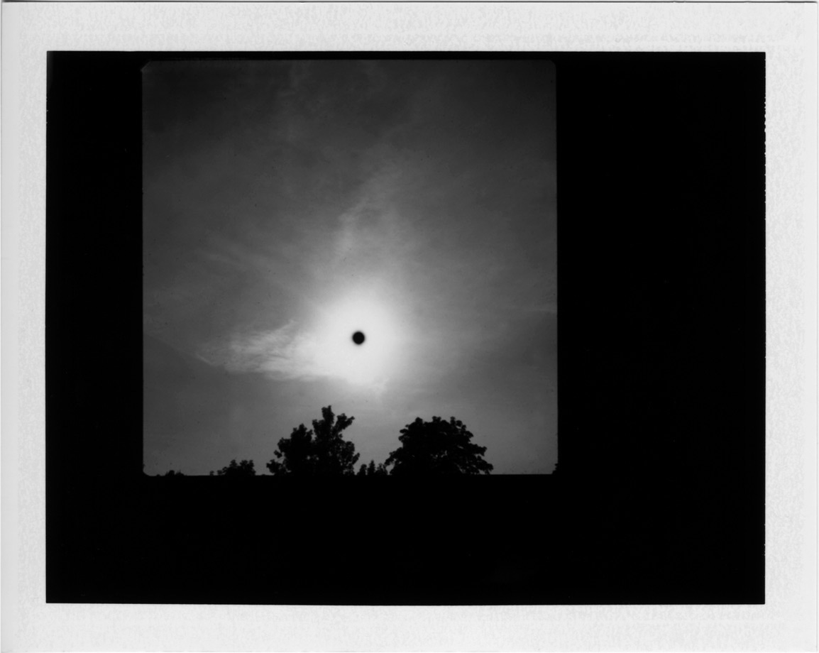 In 2012 the second part of a rare astronomical event called the transit of Venus occurred, the first part having taken place in 2004. The next occurrences of this event will be in 2117 and 2125. Transits of Venus are among the rarest of predictable celestial phenomena and involve the planet Venus travelling directly between the Earth and the Sun, resulting in a black speck moving across the surface of the sun. During this event two sequential polaroid exposures were made, using a standard focal length lens equivalent to the natural viewing perspective of the human eye. The technical limitations of the equipment resulted in landscape, rather than astronomical photographs; the chemical reaction of the polaroid film to the direct sunlight leaves a black disc in the sky where the sun would be. The actual transit of Venus is therefore not visible at all and remains merely an idea.