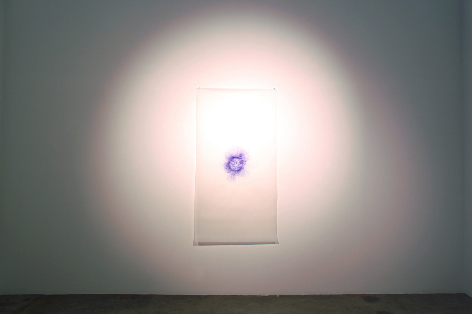 Taking scientific charts as a starting point, this work is a study of the magnetic field lines of the sun. Using a household biro as the medium lends a feeling of banality to this remarkable and invisible phenomenon.