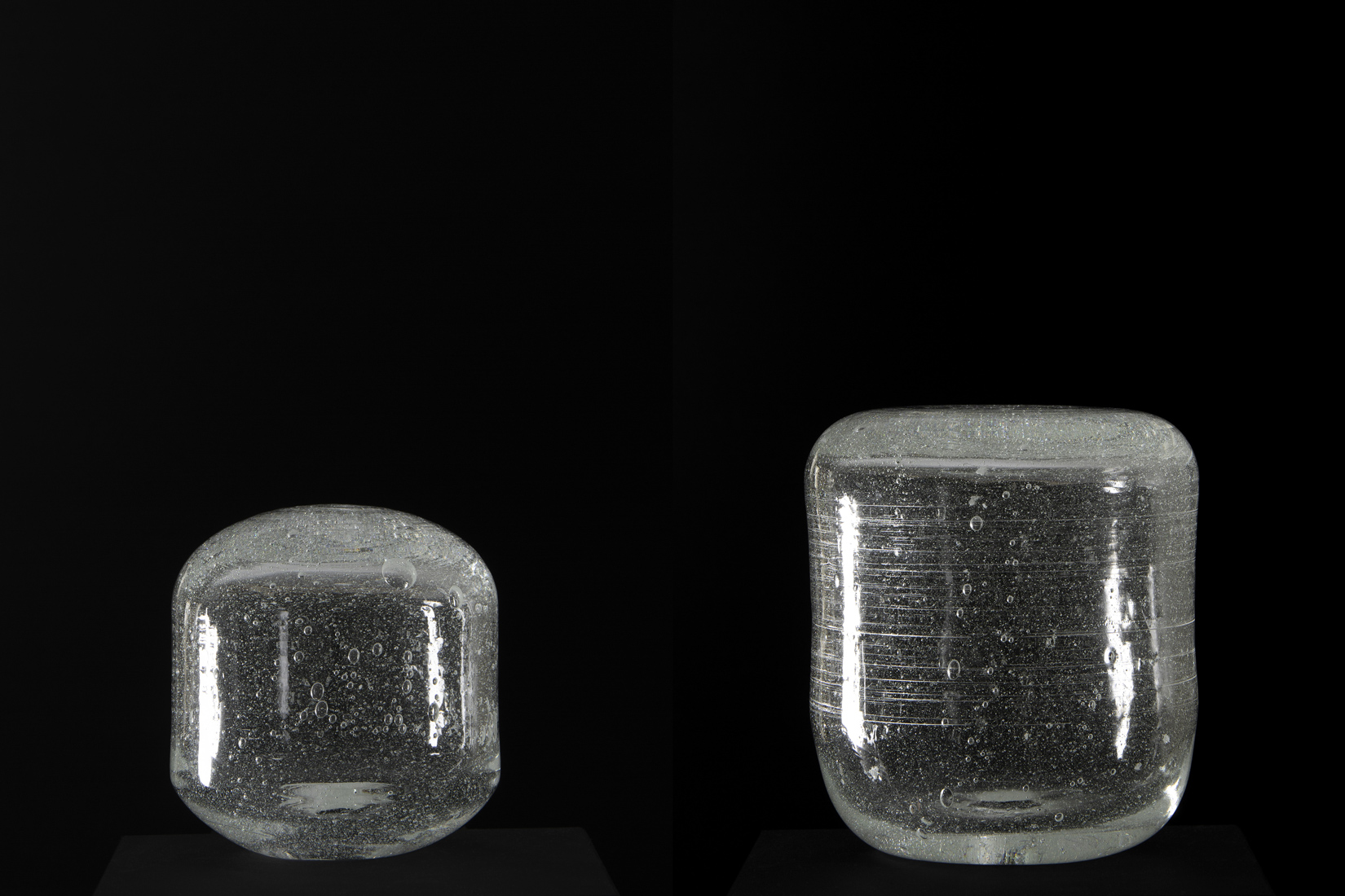 series of blown glass objects made from sand obtained from a site